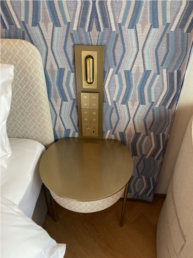 房間內(nèi)不銹鋼按鈕面板和不銹鋼床頭柜