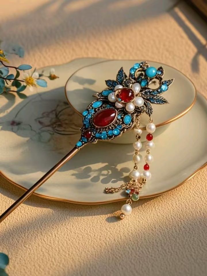 華,散發(fā)著柔和溫潤(rùn)的光澤。此簪無(wú)論是斜插于發(fā)間,伴青絲搖曳,彰顯東方女性的溫婉與優(yōu)雅,還是作為收藏珍品,置于錦盒之中,都承載著千年古風(fēng)的獨(dú)特魅力,讓人不禁沉醉于那如夢(mèng)似幻的古典情境之中。